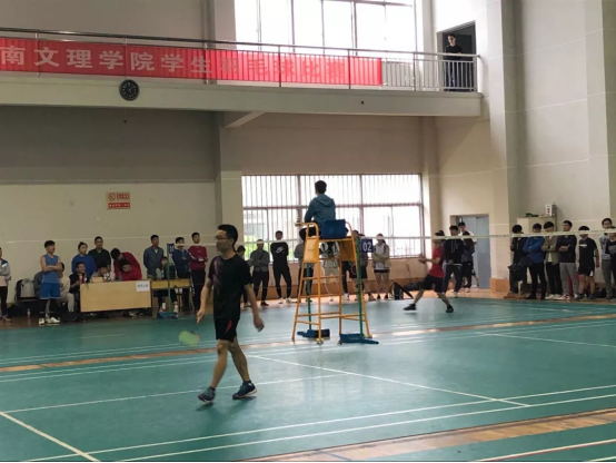我院选手前后左右、迅捷移动,或奋力扣杀、或精彩扑救,尽情展现技术与战术。只见小球你来我往,在空中飞来飞去,让人目不暇接。在整个比赛过程中,时时有惊险,处处有惊心,但也充满着欢声笑语。