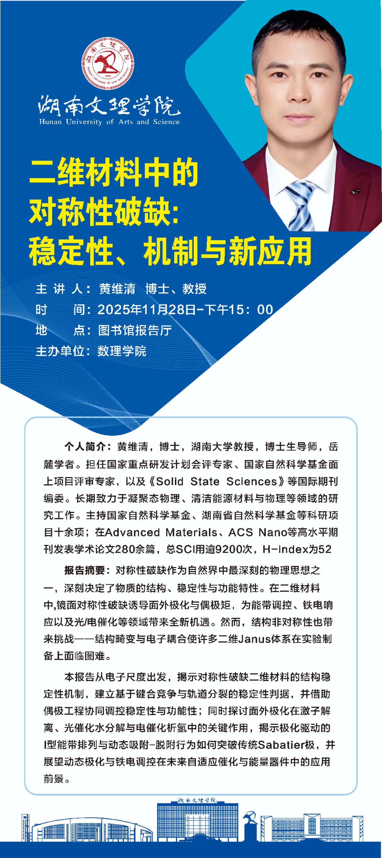 学术报告:二维材料中的对称性破缺:稳定性、机制与新应用